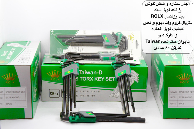 آچار آلن و ستاره 9 تیکه فوق بلند متریال کروم وانادیوم واقعی برند رولکس ROLX تحت لیسانس تایوان