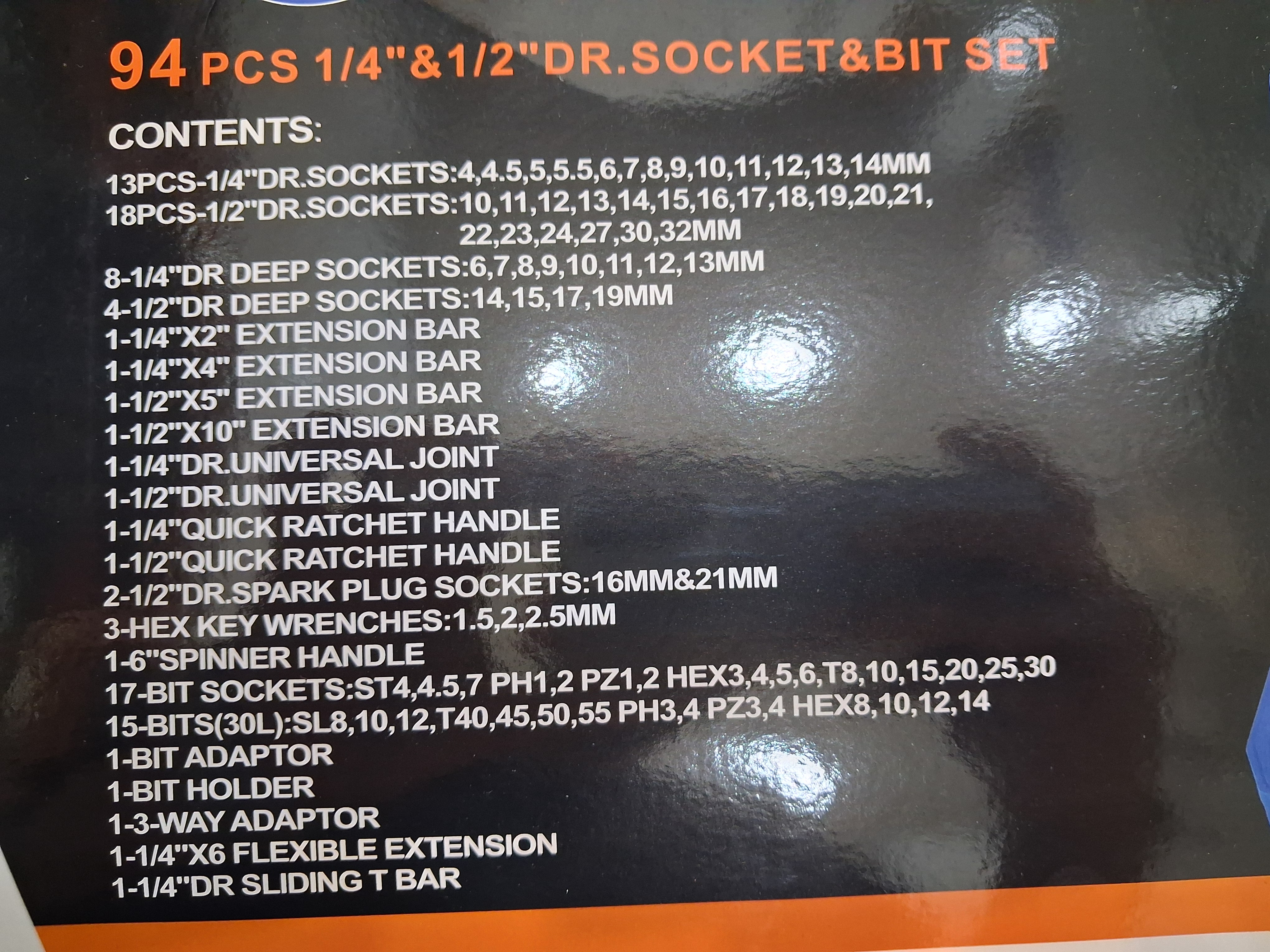 جعبه بکس درجه یک کیفیت عالی ۹۴ پارچه سری ۱/۲ و/۱۴ مشخصات وسایل های داخلی رو عکس آخر هستند