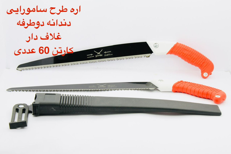 اره طرح سامورایی دندانه دوطرفه قلاف دار درجه یک دسته پلاستیکی قرمز و مشکی کیفیت بالا